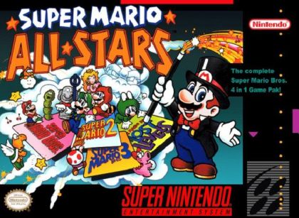 The All-Star Magic of Mario Continues! Revisit the magic and fun of the classic Super Mario Bros. series on your Super NES! All the great Super Mario Bros. games for the NES have been powered up with 16-bit graphics and sound and collected on one super game pak. As an added bonus, the previously unreleased "Lost Levels" are included. These super challenging courses have never been available in this country until now! * Four great games in one game pak! * Battery-backed memory saves up to 4 players' progress through every game! * Play alone or 2 players can alternate play! * New 16-bit graphics, sound, and other surprises!