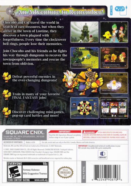 Chocobo and Cid, FINAL FANTASY mainstays-turned-treasure hunters, are magically transported to a mysterious town whose people's memories are lost with each bell toll of the clocktower. One day, a strange boy named Raffaello arrives and creates dungeons of memories to help the townspeople remember who they are. Now it's up to Chocobo to journey through the dungeons and retrieve everyone's memories!