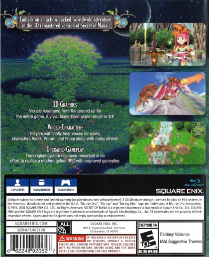 The battle for Mana includes many tumultuous encounters along the way; armed with the Mana Sword and joined by his two companions Primm and Popoi, Randi leads the epic quest to battle the treacherous empire as it tries to gain control of Mana.