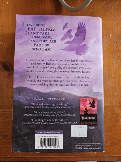 Fighting for survival in a shattered world! the truth is her only hope. The thrillingly dark sequel to New York Times bestseller, Divergent. I have done bad things. I can't take them back, and they are part of who I am. Tris has survived a brutal attack on her former home and family. But she has paid a terrible price. Wracked by grief and guilt, she becomes ever more reckless as she struggles to accept her new future. Yet if Tris wants to uncover the truth about her world, she must be stronger than ever! because more shocking choices and sacrifices lie ahead.