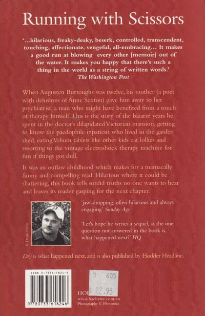 In this unforgettable, in turns hilarious and harrowing, memoir Augusten Burroughs recounts the bizarre events of his childhood. After his parents' divorce, his mother, a delusional poet, left him in the care of her pyschiatrist, a man who might have benefited from a little therapy himself. Suddenly, at age twelve, Augusten found himself living in a dilapidated Victorian mansion with the doctor's bizarre family and a few patients. In the psychiatrist's house, there are no rules, only chaos. The christmas tree stayed up until summer, Valium was eaten like Pez and, if things got dull, there was always the vintage electroshock-therapy machine under the stairs... RUNNING WITH SCISSORS is a true story, compelling and maniacally funny. Above all, it chronicles an ordinary boy's survival under the most extraordinary circumstances. 'Beautifully written with a finely tuned sense of style and wit...compulsively entertaining' - Publishers Weekly 'a bawdy, outrageous, often hilarious account...this guy doesn't miss a beat.' - New York Times