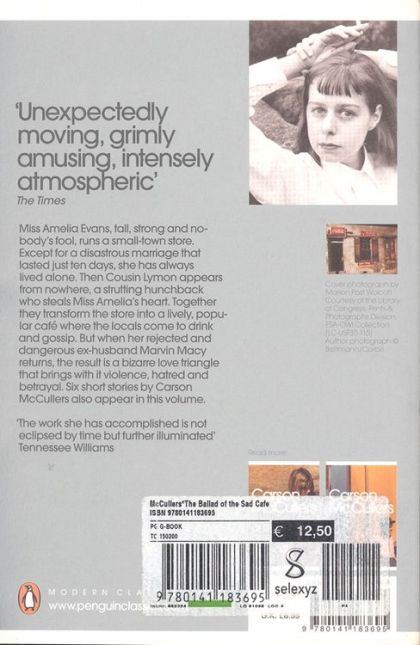 'Brilliant ... a panorama of a remarkable talent ... McCullers's finest stories' The New York Times Few writers have expressed loneliness, the need for human understanding and the search for love with such power and poetic sensibility as the American writer Carson McCullers, and The Ballad of the Sad Café collects her best-loved novella together with six short stories, published in Penguin Modern Classics. Miss Amelia Evans, tall, strong and nobody's fool, runs a small-town store. Except for a disastrous marriage that lasted just ten days, she has always lived alone. Then Cousin Lymon appears from nowhere, a strutting hunchback who steals Miss Amelia's heart. Together they transform the store into a lively, popular café where the locals come to drink and gossip. But when her rejected and dangerous ex-husband Marvin Macy returns, the result is a bizarre love triangle that brings with it violence, hatred and betrayal. Among other fine works, the collection also includes 'Wunderkind', McCullers's first published story written when she was only seventeen, about a musical prodigy who suddenly realizes she will not go on to become a great pianist.