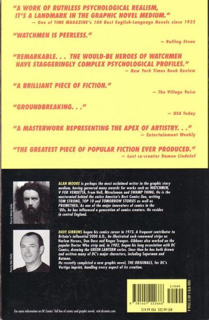 Written by Alan Moore Art and cover by Dave Gibbons DC Comics presents this special edition of the WATCHMEN TP, complete with re-colored cover art by artist extraordinaire Dave Gibbons. Created especially for the international market, this edition is also available to retailers in the U.S. and Canada exclusively through Diamond. One of the most influential graphic novels of all time and a perennial bestseller, WATCHMEN has only grown in stature since its original publication. Along with the new cover, this volume features the high-quality, recolored pages from WATCHMEN: THE ABSOLUTE EDITION, restored by WildStorm FX and original series colorist John Higgins. It all begins with the paranoid delusions of a half-insane hero called Rorschach. But is Rorschach really insane or has he in fact uncovered a plot to murder super-heroes and, even worse, millions of innocent civilians? On the run from the law, Rorschach reunites with his former teammates in a desperate attempt to save the world and their lives, but what they uncover will shock them to their very core and change the face of the planet! Following two generations of masked superheroes from the close of World War II to the icy shadow of the Cold War comes this groundbreaking comic story - the story of The Watchmen. Retailers: Please see this month's Previews order form for information on the WATCHMEN FLOOR DISPLAY. On sale December 3 - 334 pg, FC, $19.99 US