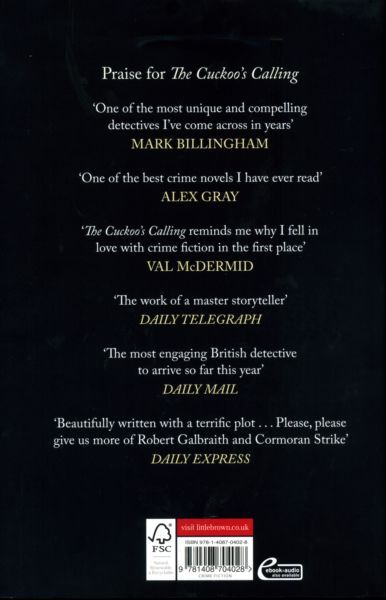 When novelist Owen Quine goes missing, his wife calls in private detective Cormoran Strike. At first, Mrs. Quine just thinks her husband has gone off by himself for a few days--as he has done before--and she wants Strike to find him and bring him home. But as Strike investigates, it becomes clear that there is more to Quine's disappearance than his wife realizes. The novelist has just completed a manuscript featuring poisonous pen-portraits of almost everyone he knows. If the novel were to be published, it would ruin lives--meaning that there are a lot of people who might want him silenced. When Quine is found brutally murdered under bizarre circumstances, it becomes a race against time to understand the motivation of a ruthless killer, a killer unlike any Strike has encountered before.