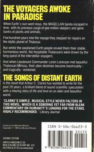 From the world's most famous science fiction writer, a poignant and vivid story of doomsday and beyond. The countdown to doomsday began with the discovery in 1956 of the neutrino, a particle with no mass and no charge. By the year 2001, the significance of this phantom particle was understood: it was a harbinger. A cosmic event was imminent, and would be close enough to touch. Soon the Sun would go nova; the demolition of Earth was assured. And so it happened in the year 3620. Over the centuries of knowing the end was at hand, humanity pulled together to launch probes into space. Primitive ships, at first, carrying embryos to distant systems, relying on machines to incubate and rear the first people of a virgin land beneath an alien sun. On Thalassa, after a journey of 200 years, a colony blossomed, only to fall silent again. On Earth the Lords of the Last Days lived with no need to care for the future of the world; it was the wildest of times, and the saddest. Last to leave was the Magellan carrying a million homeless; when cataclysm struck, its voyagers witnessed through telescopes the death of Earth and all its wonders, saw the Atlantic boil dry, the pyramids disintegrate, the land of Antarctica briefly bare of ice before fire consumed everything. Then the million slept. Five hundred years later, the Magellan must make planetfall to repair its quantum drive. Its sleepers awake to find themselves visitors to Thalassa, where a cvilization has, in fact, survived. A clash of cultures unlike any before brings danger, despair, and some very tough decisions for two different peoples far from Earth - and its distant songs.