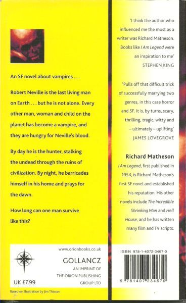 Robert Neville is the last living man on Earth, but he is not alone, for every other man, woman and child on the planet has become a vampire and they are hungry for Neville's blood. By day he is hunter; by night, the prey. How long can one man survive like this?