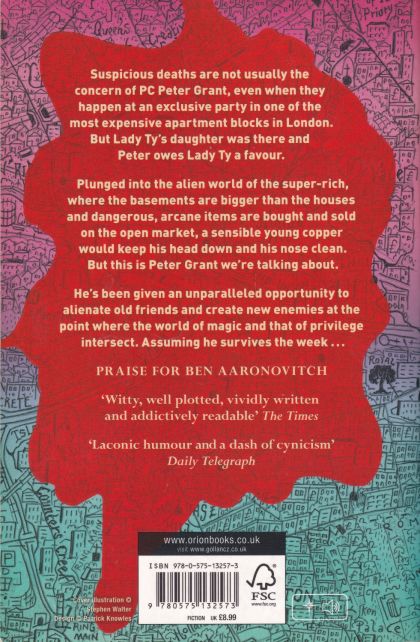 Plunged into the alien world of the super-rich, where the basements are bigger than the house and dangerous, arcane items are bought and sold on the open market, a sensible young copper would keep his head down and his nose clean. But this is Peter Grant we're talking about.