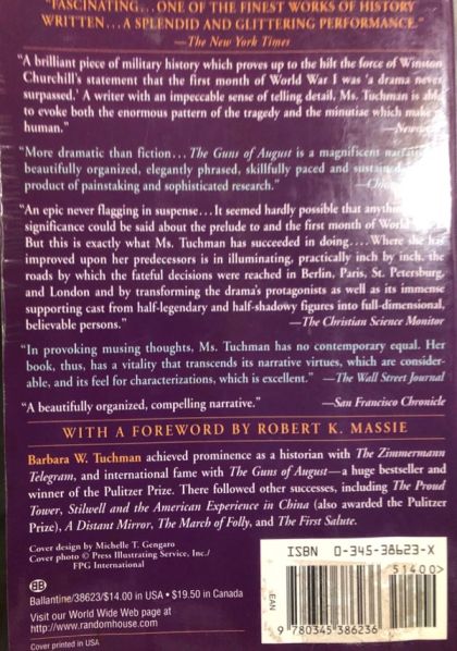 PULITZER PRIZE WINNER • “A brilliant piece of military history which proves up to the hilt the force of Winston Churchill’s statement that the first month of World War I was ‘a drama never surpassed.’”—Newsweek Selected by the Modern Library as one of the 100 best nonfiction books of all timeIn this landmark account, renowned historian Barbara W. Tuchman re-creates the first month of World War I: thirty days in the summer of 1914 that determined the course of the conflict, the century, and ultimately our present world. Beginning with the funeral of Edward VII, Tuchman traces each step that led to the inevitable clash. And inevitable it was, with all sides plotting their war for a generation. Dizzyingly comprehensive and spectacularly portrayed with her famous talent for evoking the characters of the war’s key players, Tuchman’s magnum opus is a classic for the ages. The Proud Tower, the Pulitzer Prize–winning The Guns of August, and The Zimmermann Telegram comprise Barbara W. Tuchman’s classic histories of the First World War era