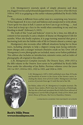 L.M. Montgomery’s journals speak of simple pleasures and deep joy, dogged worries and profound disappointments. The story of her life from 1930 to 1933 is as gripping as the earlier volumes published by Rock’s Mills Press. This volume is different from earlier ones in a surprising way, however: "It has happened. It is too cruel and hideous and unexpected to write about. I have spent two days in hell. I cannot see how I am to go on living. . . . And I have had to keep up a face to the world when something in my soul was bleeding to death" (February 5, 1933). The truth of this “cruel and hideous” event is, for a time, too dificult to commit to her journals; it casts a shadow of shame on Montgomery’s life for months. When she finally explains, it is page-turning material that gives a fascinating look into the hidden side of life in Ontario almost a century ago. Montgomery also recounts other difficult situations facing her in those years, including attempts to help a slippery young man facing embezzlement charges and a younger woman’s obsessive crush on her. Over 100 of Montgomery’s own photographs are included, many never before published. This edition also includes an introduction, extensive notes, and an index of photography, all original to this edition.