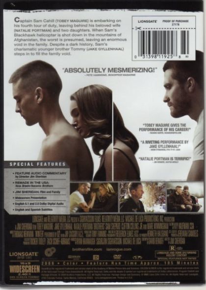 When his helicopter goes down during his fourth tour of duty in Afghanistan, Marine Sam Cahill is presumed dead. Back home, brother Tommy steps in to look over Sam’s wife, Grace, and two children. Sam’s surprise homecoming triggers domestic mayhem.