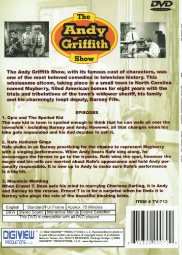 Widower Sheriff Andy Taylor and his son Opie live with Andy's Aunt Bee in Mayberry, North Carolina. With virtually no crimes to solve, most of Andy's time is spent philosophizing and calming down his friend and deputy, Barney Fife.