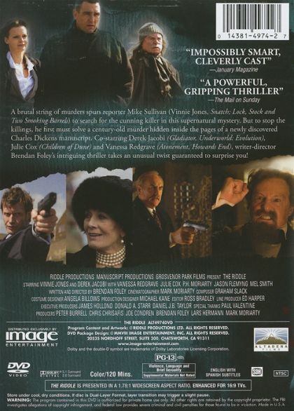 A journalist investigates a series of murders that follows the discovery of an unpublished novel by Charles Dickens in the cellar of an old Thames pub.