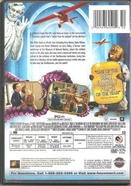 Hapless museum night watchman Larry Daley must help his living, breathing exhibit friends out of a pickle now that they've been transferred to the archives at the Smithsonian Institution. Larry's (mis)adventures this time include close encounters with Amelia Earhart, Abe Lincoln and Ivan the Terrible.