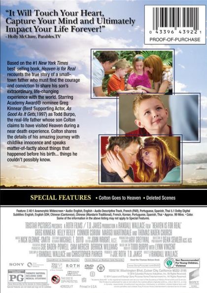 Heaven is for Real recounts the true story of a small-town father who must find the courage and conviction to share his son's extraordinary, life-changing experience with the world. Four-year-old Colton shares the details of his amazing journey with childlike innocence and speaks matter-of-factly about things that happened before his birth... things he couldn't possibly know.
