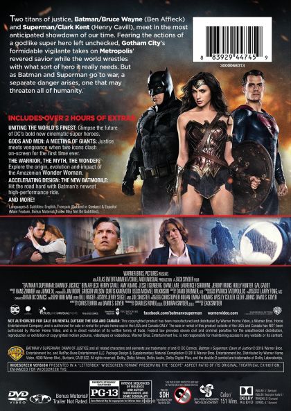 Fearing the actions of a god-like Super Hero left unchecked, Gotham City’s own formidable, forceful vigilante takes on Metropolis’s most revered, modern-day savior, while the world wrestles with what sort of hero it really needs. And with Batman and Superman at war with one another, a new threat quickly arises, putting mankind in greater danger than it’s ever known before.