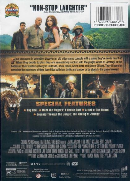 Four teenagers in detention discover an old video game console with a game they’ve never heard of. When they decide to play, they are immediately sucked into the jungle world of Jumanji in the bodies of their avatars. They’ll have to complete the adventure of their lives filled with fun, thrills and danger or be stuck in the game forever!