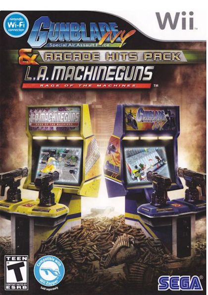 Gunblade NY and LA Machineguns has been adapted from the original arcade machine games to make full use of the Wii controller. Whilst interacting and shooting on the streets of New York and Los Angeles the Wii Zapper compatibility provides even more immersion for the players. Gunblade NY and LA Machineguns Arcade Hits Pack also contains new features such as the Chain Combo System which enables even higher scores, and the Unlockable Weapon Toggle which uses game ranking to unlock hidden extras such as wide shot, rapid fire and heavy shot. True to the original arcade games, Gunblade NY and LA Machineguns for Wii is set in the airspace above some of the United States' most well-known locations. Players will be able to combat android invaders in New York City with their Gunblade helicopter gunship or take their flying gunship to battle a new force of android enemies in some of America's most well known locales such as Los Angeles, Alcatraz, Yosemite and Las Vegas.