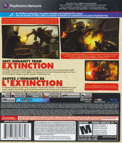 America is lost. Four years after the epic conclusion of Resistance 2, dishonorably discharged Sentinel Joseph Capelli is in hiding from the invading Chimeran menace with a pocket of survivors, including his new wife and young son. But when Dr. Fyodor Malikov arrives with a desperate plan, he sets into motions the events of Resistance 3, the third installment in the popular full-featured first-person shooter series. Resistance 3 is created by critically-acclaimed developer Insomniac Games exclusively for the PlayStation 3 (PS3) system.