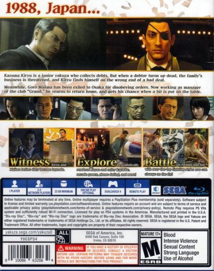 Meanwhile, series familiar Goro Majima is living the life in Osaka, running a cabaret above board. But his desire to rejoin the Yakuza Clan he was ousted from is intense, and in order to do so, Majima must complete impossible tests set by increasingly unforgiving bosses. The clan keeps pushing his limits just to see how far he will really go to prove his loyalty...