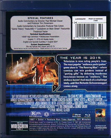 Set in 2019, a wrongly-convicted man must try to survive a public execution gauntlet staged as a TV game show.