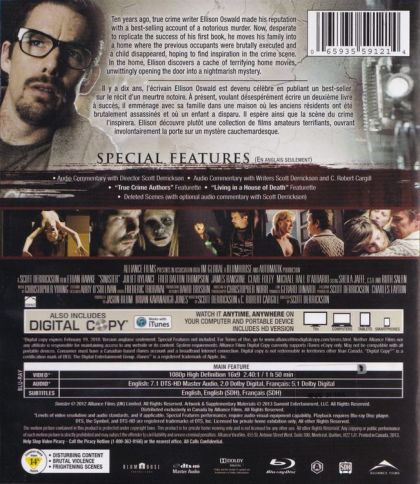 True-crime writer Ellison Oswalt is in a slump; he hasn't had a best seller in more than 10 years and is becoming increasingly desperate for a hit. So, when he discovers the existence of a snuff film showing the deaths of a family, he vows to solve the mystery. He moves his own family into the victims' home and gets to work. However, when old film footage and other clues hint at the presence of a supernatural force, Ellison learns that living in the house may be fatal.