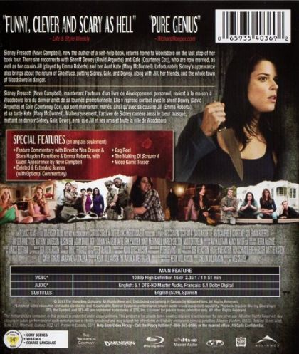 Ten years have passed, and Sidney Prescott, who has put herself back together thanks in part to her writing, is visited by the Ghostface Killer. Sidney Prescott, now the author of a self-help book, returns home to Woodsboro on the last stop of her book tour. There she reconnects with Sheriff Dewey and Gale, who are now married, as well as her cousin Jill and her Aunt Kate. Unfortunately, Sidney's appearance also brings about the return of Ghostface, putting Sidney, Gale, and Dewey, along with Jill, her friends, and the whole town of Woodsboro in danger