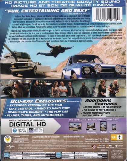 Since Dom (Diesel) and Brian's (Walker) Rio heist toppled a kingpin's empire and left their crew with $100 million, our heroes have scattered across the globe. But their inability to return home and living forever on the lam have left their lives incomplete. Meanwhile, Hobbs (Johnson) has been tracking an organization of lethally skilled mercenary drivers across 12 countries, whose mastermind (Evans) is aided by a ruthless second-in-command revealed to be the love Dom thought was dead, Letty (Rodriguez). The only way to stop the criminal outfit is to outmatch them at street level, so Hobbs asks Dom to assemble his elite team in London. Payment? Full pardons for all of them so they can return home and make their families whole again.