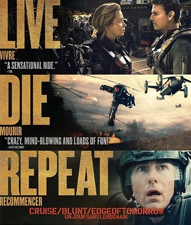 Lt. Col. Bill Cage (Cruise) is an officer who has never seen a day of combat when he is unceremoniously demoted and then dropped into combat. Cage is killed within minutes, managing to take an alpha alien down with him. But he awakens back at the beginning of the same day and is forced to fight and die again... and again - as physical contact with the alien has thrown him into a time loop.