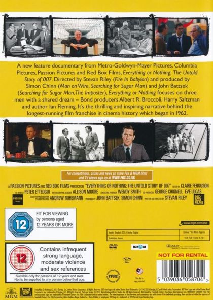 The story of three men with a shared dream: James Bond franchise producers Albert R. Broccoli and Harry Saltzman, and Bond creator and author Ian Fleming. It’s the thrilling and inspiring narrative behind the longest running film franchise in cinema history, which began in 1962.