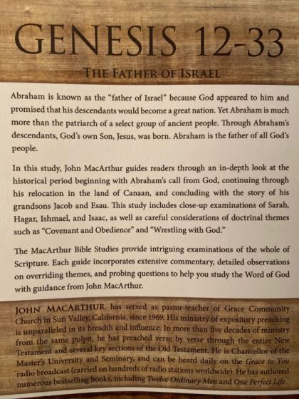 Abraham is known as the "father of Israel" because God appeared to him and promised that his descendants would become a great nation. Yet Abraham is much more than the patriarch of a select group of ancient people. Through Abraham's descendants, God's own Son, Jesus, was born. It's through Abraham that God blessed all people. In this study, pastor John MacArthur will guide you through an in-depth look at the historical period beginning with Abraham's call from God, continuing through his relocation in the land of Canaan, and concluding with the story of his grandsons Jacob and Esau. This study includes close-up examinations of Sarah, Hagar, Ishmael, and Isaac, as well as careful considerations of doctrinal themes such as "Covenant and Obedience" and "Wrestling with God." --ABOUT THE SERIES-- The MacArthur Bible Study series is designed to help you study the Word of God with guidance from widely respected pastor and author John MacArthur. Each guide provides intriguing examinations of the whole of Scripture by examining its parts and incorporates: Extensive, but straight-forward commentary on the text. Detailed observations on overriding themes, timelines, history, and context. Word and phrase studies to help you unlock the broader meaning and apply it to your life. Probing, interactive questions with plenty of space to write down your response and thoughts.