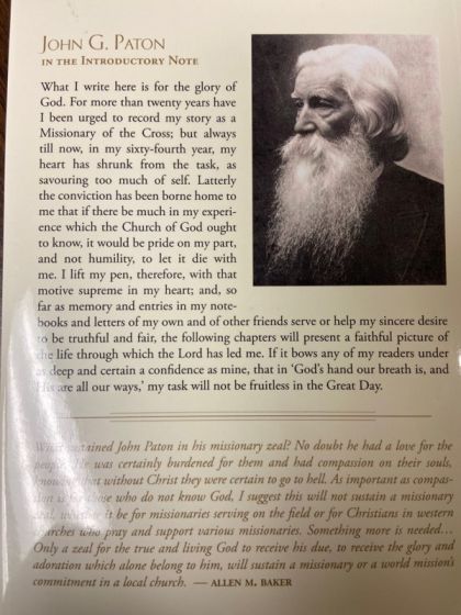 In his own words, John G. Paton tells us of his pioneering mission work among cannibals in the New Hebrides (now Vanuattu). Living with constant dangers and death threats, battling illness and enduring great personal loss and sacrifice, John G. Paton laboured on and showed great love for the island peoples. He had the joy of eventually seeing many people come to Christ and living a totally transformed lifestyle.