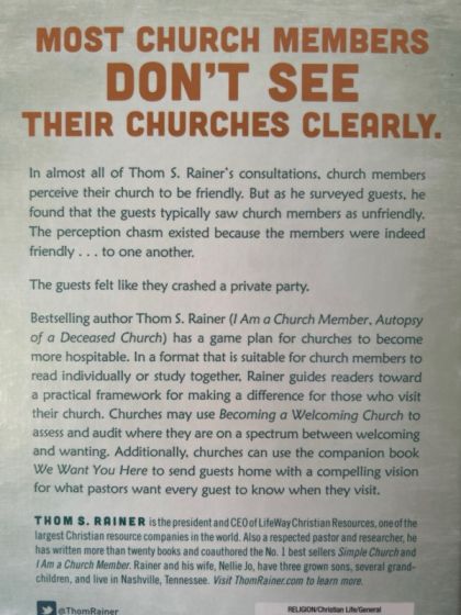 Most church members don't see their churches clearly. In almost all of Thom S. Rainer's consultations, church members perceive their church to be friendly. But as he surveyed guests, he found that the guests typically saw church members as unfriendly. The perception chasm existed because the members were indeed friendly . . . to one another. The guests felt like they crashed a private party. Bestselling author Thom Rainer (I Am a Church Member, Autopsy of a Deceased Church) has a game plan for churches to become more hospitable. In a format that is suitable for church members to read individually or study together, Rainer guides readers toward a practical framework for making a difference for those who visit their church. Churches may use Becoming a Welcoming Church to assess and audit where they are on a spectrum between welcoming and wanting. Additionally, churches can use the companion book We Want You Here to send guests home with a compelling vision for what pastors want every guest to know when they visit.