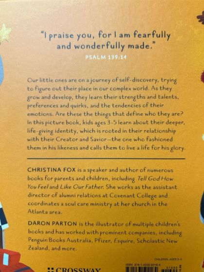 This Engaging Picture Book Helps Kids Explore Their True Identity Found in Christ Kids have an innate curiosity to explore and discover new things about themselves--they learn their strengths and talents, their preferences and quirks, all while celebrating little victories along the way. While these milestones are undoubtedly important for developing children, our culture mistakenly views them as the foundation of who they are. Deeply biblical and visually engaging, this picture book uses lyrical rhymes to help children ages 3-5 understand that their true identity is not found in their preferences, past actions, or current emotions. Instead, it is rooted in their relationship with their Creator and Savior. The one who fashioned them in his likeness and calls them to live a life for his glory. A note to parents section at the end of the book offers practical tips and additional Bible verses for instilling these truths in children as they navigate the world and build the foundation of their lives. Explores Identity and Purpose: Helps children understand they are not defined by their preferences, actions, or emotions, but by their relationship with God as his image bearer Written for Kids Ages 3-5: Engaging and lyrical, this book will keep kids entertained as they learn about themselves, their God, and the world around them Practical Approach for Parents and Guardians: A comments to parents section at the end of the book provides advice for furthering the conversation on the topic of identity