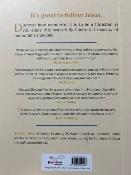 Excite kids about how great it is to be a Christian with this beautifully illustrated treasury of theological truths. Going from A to Z, kids will learn about the amazing things that are true of us if we know Christ. For example: A is for Adoption - we are children of God, part of his beloved family. B is for Branch - we are connected to Jesus, the vine, and he gives us life and all we need. C is for Citizen - we have a place in heaven, which is where we are heading. Each letter teaches children about an aspect of our identity in Christ using Bible verses and clear engaging teaching by Alistair Begg. Reflection questions and prayers are included, making it possible to use this resource devotionally. It can also be used as a kind of catechism, summarizing some of the Bible's truths about being a Christian. The alphabet format makes these theological truths easy to remember. Can be read to kids 4+ or read by kids 7+. Children will be invited to praise, thank and worship Jesus as they grow more excited about all the incredible blessings that come with being his friend.