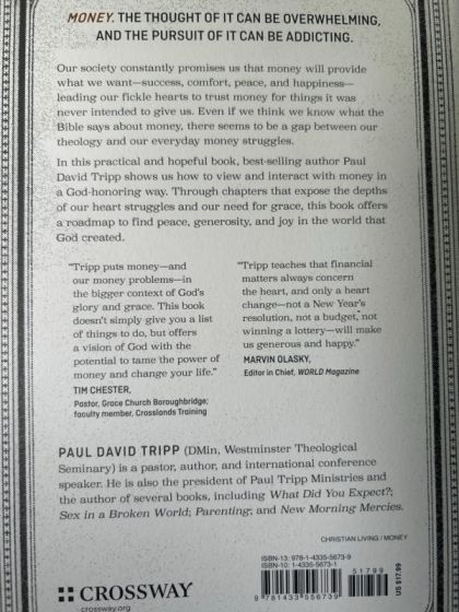 Best-Selling Author Paul David Tripp Addresses How the Gospel Reshapes and Reorients the Christian's Perspective on Finances Money. The thought of it can be overwhelming, and the pursuit of it can be addicting. Our society constantly promises us that money will provide what we want--success, comfort, peace, and happiness--leading our fickle hearts to trust money for things it was never intended to give us. Even if we think we know what the Bible says about money, there seems to be a gap between our theology and our everyday money struggles.In this practical and hopeful book, best-selling author Paul David Tripp shows us how to view and interact with money in a God-honoring way. Through chapters that expose the depths of our heart struggles and our need for grace, this book offers a roadmap to find peace, generosity, and joy in the world that God created.