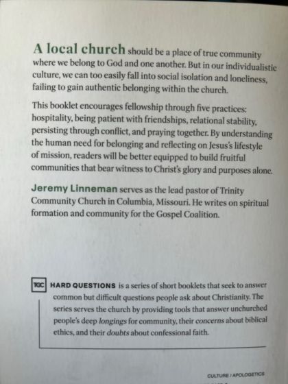 Replacing Loneliness with a Biblical Vision of Belonging A local church should be a place of true community and connection--where people belong to God and one another. But in our individualistic culture, many Christians end up struggling with social isolation and loneliness. Lacking a sense of authentic belonging within the church, some eventually stop attending or question their faith altogether. How can believers overcome these negative cultural effects and restore the biblical vision of belonging in their churches today?In this concise booklet, author and pastor Jeremy Linneman encourages readers to pursue a life of fellowship through 5 practices: taking initiative in hospitality, being patient in building friendships, maintaining relational stability, persisting through conflict, and praying together. By understanding the human need for belonging and reflecting on Jesus's lifestyle of mission, ministry, and care, readers will be better equipped to build fruitful communities that bear witness to Christ's glory and purposes alone. Offers a Biblical Vision of Belonging: Shows how true belonging is only found in a local Christian community Useful for Church Leaders: Encourages church leaders to build needed spiritual communities that bear witness to Christ's glory alone Short, Accessible Format: A concise biblical exploration of belonging and community TGC Hard Questions Series: Equips readers with answers to difficult questions facing the modern church