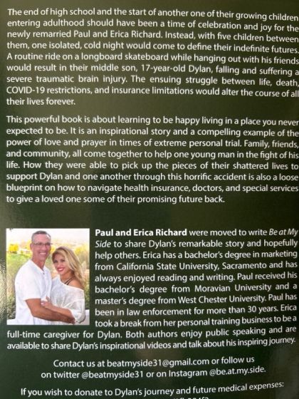 The end of high school and the start of another one of their growing children entering adulthood should have been a time of celebration and joy for the newly remarried Paul and Erica Richard. Instead, with five children between them, one isolated, cold night would come to define their indefinite futures. A routine ride on a longboard skateboard while hanging out with his friends would result in their middle son, 17-year-old Dylan, falling and suffering a severe traumatic brain injury. The ensuing struggle between life, death, COVID-19 restrictions, and insurance limitations would alter the course of all their lives forever.This powerful book is about learning to be happy living in a place you never expected to be. It is an inspirational story and a compelling example of the power of love and prayer in times of extreme personal trial. Family, friends, and community, all come together to help one young man in the fight of his life. How they were able to pick up the pieces of their shattered lives to support Dylan and one another through this horrific accident is also a loose blueprint on how to navigate health insurance, doctors, and special services to give a loved one some of their promising future back.