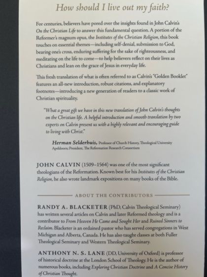 New Translation of John Calvin's Classic Work Explores What It Means to Live the Christian Life For centuries, Christians have read John Calvin's On the Christian Life to answer a fundamental question: What does it mean to live faithfully as a Christian? This fresh translation of what is often referred to as Calvin's "Golden Booklet" features an all-new introduction, robust citations, and explanatory footnotes--introducing a new generation of readers to a classic work of Christian spirituality.In the book--a portion of the Reformer's magnum opus, Institutes of the Christian Religion--Calvin suggests that a deep understanding of theology is worthless if the gospel has yet to "penetrate into the most intimate affection of the heart." Touching on essential themes like self-denial, submission to God, bearing one's cross, enduring suffering for the sake of righteousness, and meditating on the life to come, this accessible work will help believers reflect on their lives as Christians and lean on the grace of Jesus in everyday life. A Brand-New Translation: Translated from the original Latin edition by Calvin scholar Raymond A. Blacketer--making this classic work more accessible to modern readers than ever before A Fresh Introduction: Includes an all-new introduction by editor Anthony N. S. Lane, professor of historical doctrine at the London School of Theology Helpful Resources: Includes robust source citations and explanatory footnotes to help pastors, students, scholars, and everyday Christians better understand Calvin's words and context Explores the Christian Life: Addresses themes including self-denial, taking up one's cross, submitting to God, and suffering for the sake of righteousness