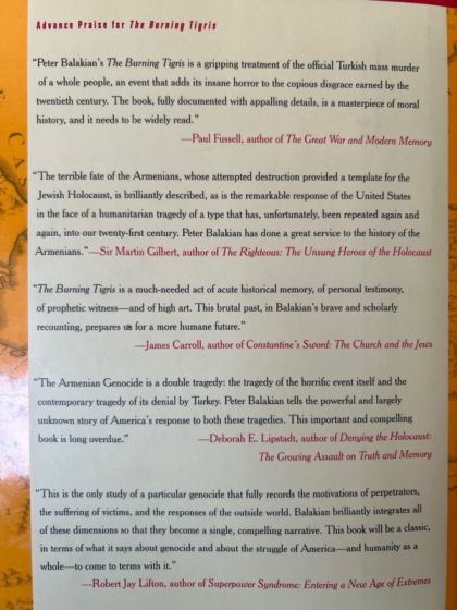 Awarded the Raphael Lemkin Prize for the best scholarly book on genocide by the Institute for Genocide Studies at John Jay College of Criminal Justice/CUNY Graduate Center.In this groundbreaking history of the Armenian Genocide, the critically acclaimed author of the memoir Black Dog of Fate brings us a riveting narrative of the massacres of the Armenians in the 1890s and genocide in 1915 at the hands of the Ottoman Turks. Using rarely seen archival documents and remarkable first-person accounts, Peter Balakian presents the chilling history of how the Young Turk government implemented the first modern genocide behind the cover of World War I. And in the telling, he also resurrects an extraordinary lost chapter of American history.During the United States' ascension in the global arena at the turn of the twentieth century, America's humanitarian movement for Armenia was an important part of the rising nation's first epoch of internationalism. Intellectuals, politicians, diplomats, religious leaders, and ordinary citizens came together to try to save the Armenians. The Burning Tigris reconstructs this landmark American cause that was spearheaded by the passionate commitments and commentaries of a remarkable cast of public figures, including Julia Ward Howe, Clara Barton, Theodore Roosevelt, Woodrow Wilson, Ambassador Henry Morgenthau, Charlotte Perkins Gilman, Alice Stone Blackwell, Stephen Crane, and Ezra Pound, as well as courageous missionaries, diplomats, and relief workers who recorded their eyewitness accounts and often risked their lives in the killing fields of Armenia.The crisis of the "starving Armenians" was so embedded in American popular culture that, in an age when a loaf of bread cost a nickel, the American people sent more than $100 million in aid through the American Committee on Armenian Atrocities and its successor, Near East Relief. In 1915 alone, the New York Times published 145 articles about the Armenian Genocide.Theodore Roosevelt called the extermination of the Armenians "the greatest crime of the war." But in the turmoil following World War I, it was a crime that went largely unpunished. In depicting the 1919 Ottoman court-martial trials, Balakian reveals the perpetrators of the Armenian Genocide confessing their guilt -- an astonishing fact given the Turkish government's continued denial of the Genocide.After World War I, U.S. oil interests in the Middle East steered America away from the course it had pursued for four decades. As Balakian eloquently points out, America's struggle between human rights and national self-interest -- a pattern that would be repeated again and again -- resonates powerfully today. In crucial ways, America's involvement with the Armenian Genocide is a paradigm for the modern age.