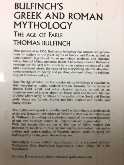 First published in 1855, Bulfinch's" Mythology "has introduced generations of readers to the great myths of Greece and Rome, as well as time-honored legends of Norse mythology, medieval, and chivalric tales, Oriental fables, and more. Readers have long admired Bulfinch's versions for the skill with which he wove various versions of a tale into a coherent whole, the vigor of his storytelling, and his abundant cross-references to poetry and painting, demonstrating the relationship of literature and art. ""Now" The Age of Fable, " the first section of the "Mythology, " is available in this inexpensive, highly readable edition. Drawing on the works of Homer, Ovid, Virgil, and other classical authors, as well as an immense trove of stories about the Norse gods and heroes, "The Age of Fable" offers lively retellings of the myths of the Greek and Roman gods: Venus and Adonis, Jupiter and Juno, Daphne and Apollo, and many others.The myths and legends so vividly retold in this volume underlie much of the art, literature, and culture of Western civilization. As Bulfinch put it, "Without a knowledge of mythology, much of the elegant literature of our own language cannot be understood and appreciated." With this inexpensive edition of "The Age of Fable, "readers can immerse themselves in these seminal myths, increasing their appreciation and understanding of Western culture, while enjoying the myths purely as the great stories they are.Unabridged Dover (2000) republication of a standard edition.