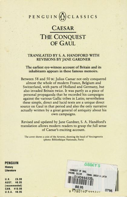Between 58 and 50 BC Caesar conquered most of the area now covered by France, Belgium and Switzerland, and twice invaded Britain. This is the record of his campaigns. Caesar's narrative offers insights into his military strategy & paints a fascinating picture of his encounters with the inhabitant of Gaul and Britain, as well as offering lively portraits of a number of key characters such as the rebel leaders and Gallic chieftains. This can also be read as a piece of political propaganda, as Caesar sets down his version of events for the Roman public, knowing that he faces civil war on his return to Rome.For more than seventy years, Penguin has been the leading publisher of classic literature in the English-speaking world. With more than 1,700 titles, Penguin Classics represents a global bookshelf of the best works throughout history and across genres and disciplines. Readers trust the series to provide authoritative texts enhanced by introductions and notes by distinguished scholars and contemporary authors, as well as up-to-date translations by award-winning translators.