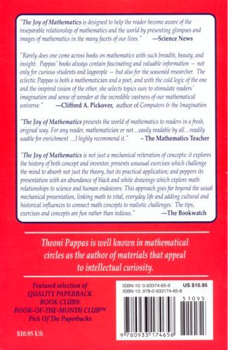 Part of the joy of mathematics is that it is everywhere-in soap bubbles, electricity, da Vinci's masterpieces, even in an ocean wave. Written by the well-known mathematics teacher consultant, this volume's collection of over 200 clearly illustrated mathematical ideas, concepts, puzzles, and games shows where they turn up in the "real" world. You'll find out what a googol is, visit hotel infinity, read a thorny logic problem that was stumping them back in the 8th century.THE JOY OF MATHEMATICS is designed to be opened at randomit's mini essays are self-contained providing the reader with an enjoyable way to explore and experience mathematics at its best.