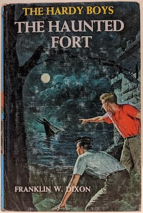 A long-distance telephone call from Chet Morton’s uncle summons Frank and Joe Hardy and their staunch pal Chet to a summer art school, located near old Fort Senandaga which is reputed to be inhabited by a ghost. The young detectives’ assignment: recover two famous oil paintings stolen from the valuable Prisoner-Painter collection owned by Jefferson Davenport. Mr. Davenport reveals that one of the famous pictures contains a clue to the hiding place of a priceless gold chain. Vicious threats and deadly traps beset Frank, Joe, and Chet as they search for clues to the stolen paintings and the gold treasure – a search that is complicated by the stormy feud between an Englishman and a Frenchman over the military history of the ancient fort.