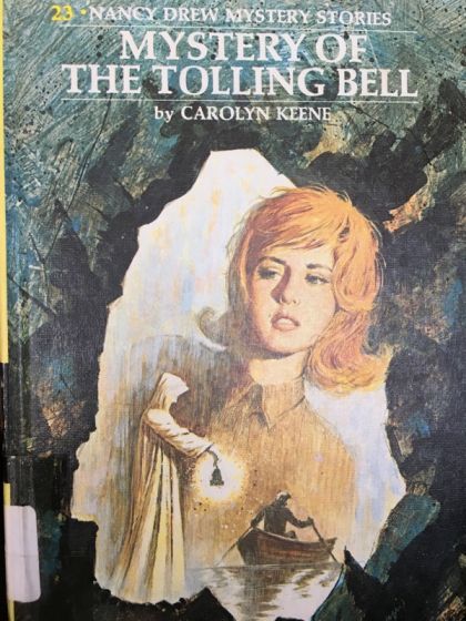 Nancy becomes involved in another mystery when she accepts an invitation from Mrs. Chantrey, a client of Mr. Drew, to vacation at her cottage in a picturesque seaside town. Carson Drew has promised to join his daughter, but fails to arrive. The alarming disappearance of Mr. Drew and the odd circumstances surrounding his rescue are only the start of a series of highly dangerous adventures for Nancy and her friends Bess and George. Mrs. Chantrey’s story about a nearby Cliffside cave reputedly inhabited by a ghost intrigues Nancy and she decides to investigate. Several frightened townspeople claim to have seen an apparition and heard the weird sounds of a tolling bell just before water rushes from the cave. Will Nancy discover the true cause of these mysterious occurences?