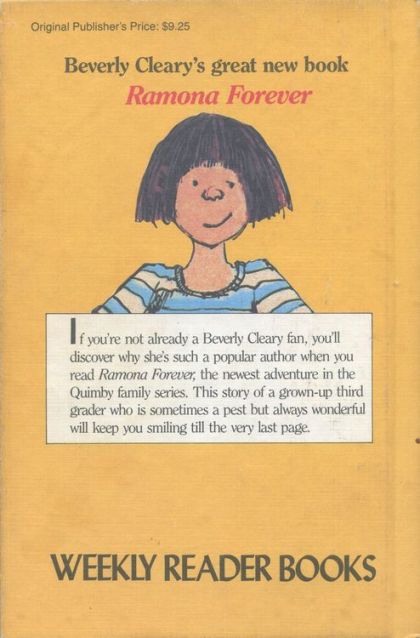 Ramona is back! New and old friends alike will rejoice in Beverly Cleary's latest book about spunky Ramona and the whole Quimby family. From the minute that Howie Kemp's "rich" Uncle Hobart arrives from Saudi Arabia, things are off to a rousing start. There are new beginnings and discoveries and two very special surprises -- one surprise is big and one is very little. It's a time of change for all the Quimbys; a time of new joys and little sadnesses, too. There are new worries -- Mr Quimby is worried about finding a teaching job, Ramona is worried they may have to move if he does, and Beezus is worried about her teenage complexion. And through it all Ramona, a grown up third-grader, remains a sometimes pesty, sometimes brave, sometimes blunderful, but always wonderful Ramona -- forever!