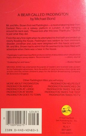 Mr. and Mrs. Brown first met Paddington--a most endearing bear from Darkest Peru--on a railway platform in London. A sign hanging around his neck said, "Please look after this bear. Thank you" So that is just what they did. From the very first night when he attempted his first bath and ended up nearly flooding the house, Paddington was seldom far from imminent disaster. Jonathan and Judy were delighted with this havoc and even Mr. and Mrs. Brown had to admit that life seemed to be more filled with adventure when there was a bear in the house.