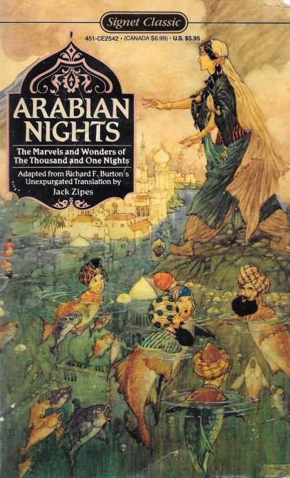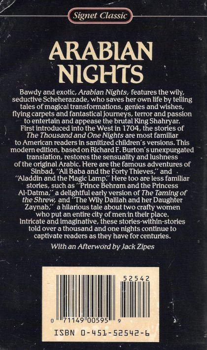 “Arabian Nights”, features the wily, seductive Scheherazade, who saves her own life by telling tales of magical transformations, genies and wishes, flying carpets and fantastical journeys, terror and passion to entertain and appease the brutal King Shahryar. Here are the famous adventures of Sinbad, “Ali Baba and the Forty Thieves”, and “Aladdin and the Magic Lamp”. Intricate and imaginative, these stories-within-stories told over a thousand and one nights continue to captivate readers as they have for centuries.