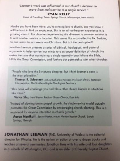 "Leeman's work was influential in our church's decision to move from multiservice to a single service." --Ryan Kelly, Pastor of Preaching, Desert Springs Church, Albuquerque, New Mexico Maybe you have been there: you're running late to church, and you know it will be hard to find an empty seat. This is an all-too-frequent experience in a growing church. For churches experiencing this dilemma, a common solution is to add another service or location. This seems like a cost-effective fix. Besides, no one wants to turn away non-Christians. But is it the best option? Jonathan Leeman presents a series of biblical, theological, and pastoral arguments to help reorient our minds to a scriptural definition of church. He makes the case that maintaining a single assembly best follows the Bible, fulfills the Great Commission, and furthers our partnership with other churches.