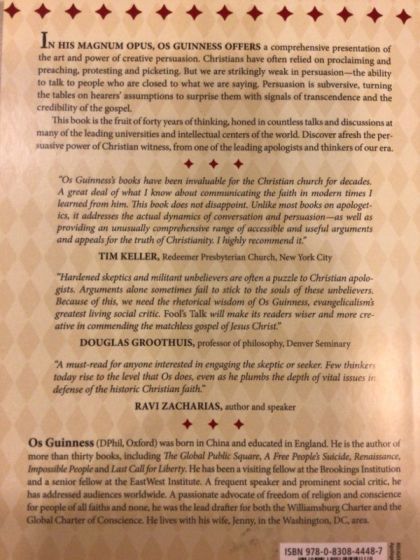 Social Criticism and Cultural Engagement In our post-Christian context, public life has become markedly more secular and private life infinitely more diverse. Yet many Christians still rely on cookie-cutter approaches to evangelism and apologetics. Most of these methods assume that people are open, interested and needy for spiritual insight when increasingly most people are not. Our urgent need, then, is the capacity to persuade—to make a convincing case for the gospel to people who are not interested in it. In his magnum opus, Os Guinness offers a comprehensive presentation of the art and power of creative persuasion. Christians have often relied on proclaiming and preaching, protesting and picketing. But we are strikingly weak in persuasion—the ability to talk to people who are closed to what we are saying. Actual persuasion requires more than a one-size-fits-all approach. Guinness notes, "Jesus never spoke to two people the same way, and neither should we." Following the tradition of Erasmus, Pascal, G. K. Chesterton, C. S. Lewis, Malcolm Muggeridge and Peter Berger, Guinness demonstrates how apologetic persuasion requires both the rational and the imaginative. Persuasion is subversive, turning the tables on listeners' assumptions to surprise them with signals of transcendence and the credibility of the gospel. This book is the fruit of forty years of thinking, honed in countless talks and discussions at many of the leading universities and intellectual centers of the world. Discover afresh the persuasive power of Christian witness from one of the leading apologists and thinkers of our era.