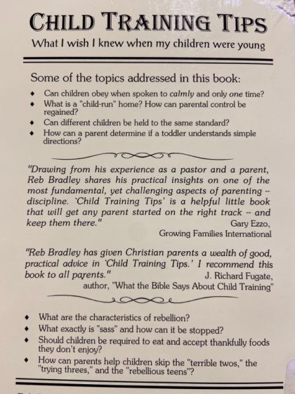 Child Training Tips is not just another interpretation on how to train a child-this book has no equal! In this updated edition of the original classic, every chapter consists of lists of symptoms that identify behavior problems and expose trouble spots in parenting. How can parents tell if they've given control of their home to their children? How can a child be trained to obey quickly when spoken to calmly and only one time? What's gone wrong when chastisement doesn't work? How can appropriate punishments be determined? What are the most subtle signs of rebellion? How do parents accidentally train their children to disobey them? What can be expected of children at what ages? What exactly is sass and how can it be stopped? Pastor and family counselor and minister Reb Bradley answers these and many more questions like these in this best-selling child-rearing book.